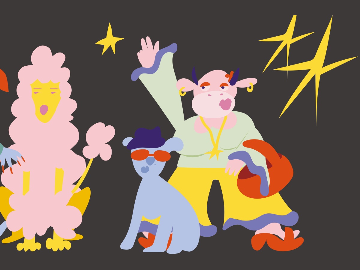 «Власні походи в магазин я часто роблю веселими: спеціально потішно вдягаюся, вмикаю подкаст, беру собачку. У цій роботі мої персонажі також усі із собачками, а поруч із двома зайками йде й моя чихуахуа Оззі. Як ілюстраторка я починала малювати саме тварин у вигляді людей, і ця робота — підсумок цілого етапу моєї творчості, — ділиться Олександра. — Цю роботу я створювала більше для розваги, не закладаючи якихось серйозних сенсів. Наприклад, передостання пара з рожевим пуделем — це зображення того, як я мрію жити в майбутньому».
