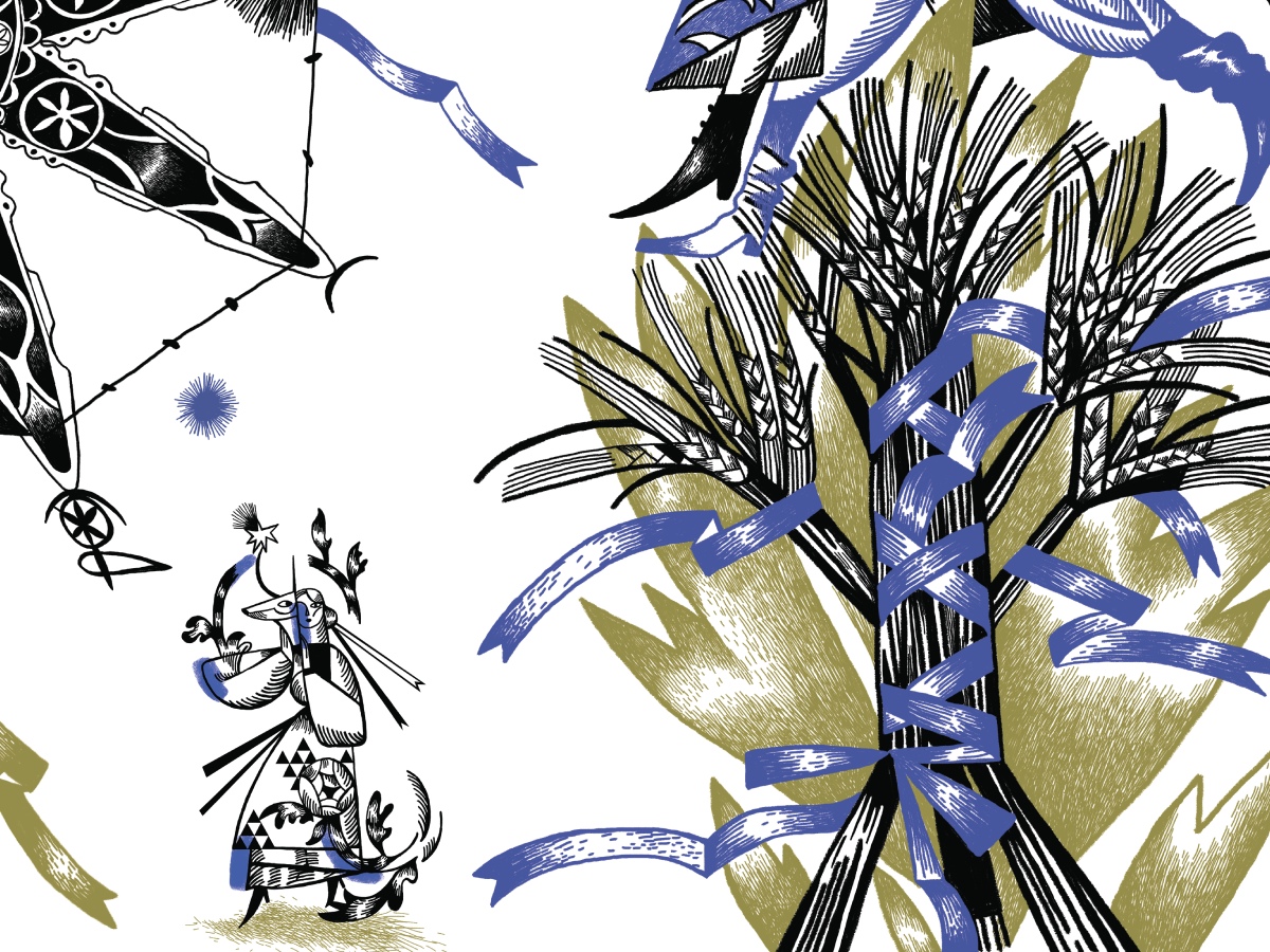 «Я мріяла поїхати до Криворівні на святкування Маланки, але не мала такої можливості, тому передивилася відео всіх років святкування і почала малювати різдвяні ілюстрації. Вони переросли в серію, а для “Сільпо” — у цілий цикл про українські свята. Я зобразила Різдво, Великдень, Івана Купала, Покрову — свято, на яке молодята одружуються, бо в Україні було заведено грати весілля саме восени, і знову зимові свята. Мені хотілося підняти людям настрій, відволікти й зацікавити українськими традиціями», — коментує Ксенія.