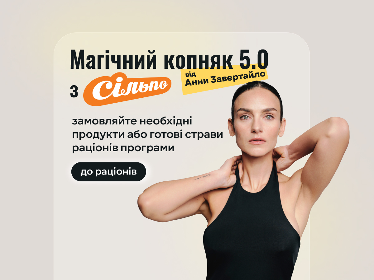 Ми знаємо, що формування нових звичок потребує ресурсів, тому хочемо вас підтримати в цьому процесі. І щоби зменшити кількість рутинної роботи та побутове навантаження, онлайн-супермаркет «Сільпо» підготував для вас набір продуктів відповідно до щоденного меню онлайн-інтенсиву. Тож всього за декілька кліків ви зможете замовити доставку продуктів для здорового харчування! Для кожного дня раціону ми зробили окремі підбірки товарів, які можна замовити на веб-сайті або в мобільному застосунку «Сільпо».