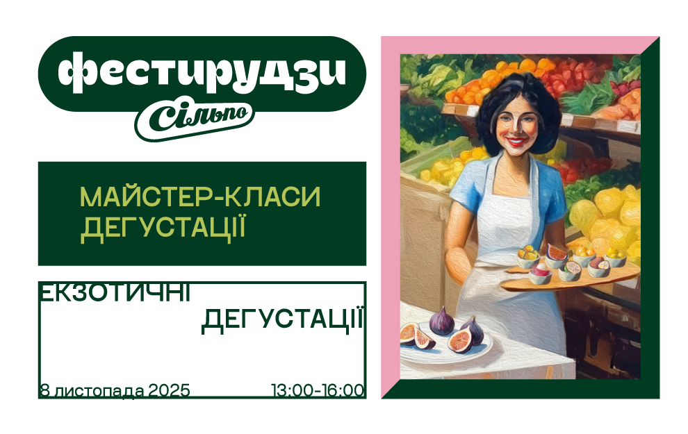 На дегустаціях від Фестирудз «Екзотика – фруктувати, пізнавати» на вас чекає артінсталяція смаків! Палітра, де кожен фрагмент – це екзотичний фрукт. Усю цю гармонійну композицію, що нагадує мазок фарби на полотні, презентує художниця у білосніжному кітелі та червоному береті. Вона запропонує вам фрукти прямо з палітри.