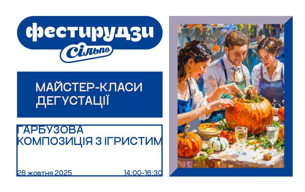 Коли-небудь різьбили по гарбузу? Ми знаємо, де можна спробувати! На майстер-класі від Фестирудз «Гелоу, гарбузики-фестирудзики!» ви зможете створити осінній декор та фігурно порізьбити по мінігарбузах. Композицію прикрасимо мохом та додамо головного акценту – милого керамічного привида. А щоб творчий процес був ще приємнішим, ми будемо пригощати вас ігристим!