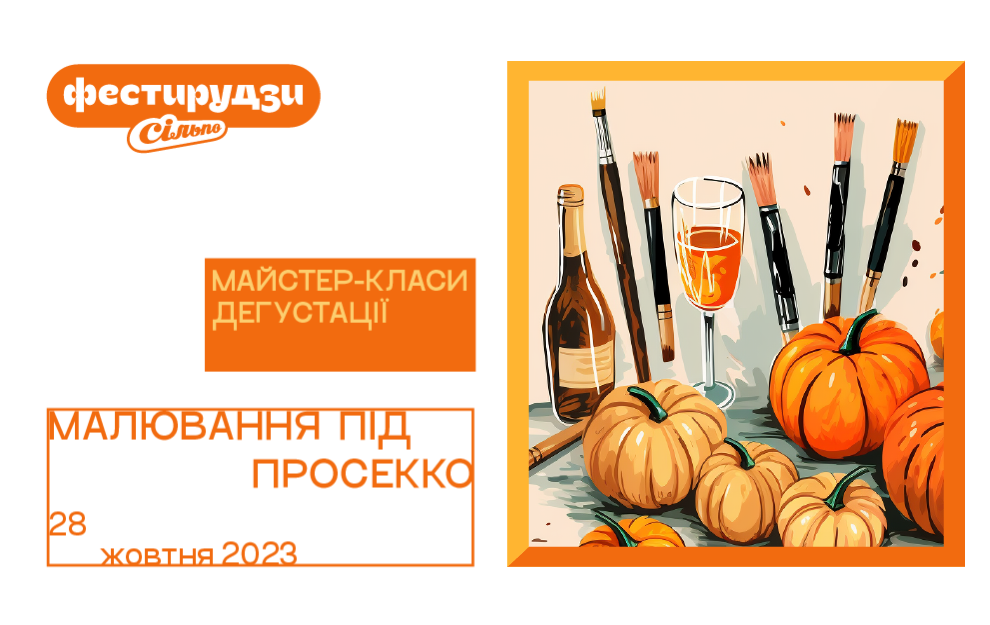Яскраві фарби, мольберт та ігристе ми вже підготували. А наш художник допоможе вам домалювати скибочку гарбуза на полотні.