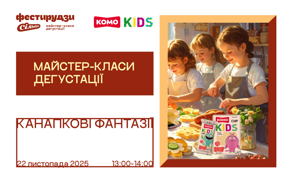Кожен сніданок у вашому домі стане канапковим мистецтвом, якщо... малеча завітає на сільпошний майстер-клас із виготовлення канапок від Фестирудз «Сирно-каштанові вау!». 22 листопада з 13:00 до 14:00 юні кулінари й кулінарки готуватимуть яскраві та апетитні бутерброди із дитячого сиру «Комо Kids».