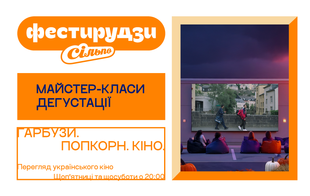 Головна новина: автівка тепер не потрібна. В межах подій від Фестирудз наш автокінотеатр перевтілюється і змінює формат: 17, 18, 24, 25 жовтня о 20:00 ви зможете дивитись фільми в затишній атмосфері просто неба.