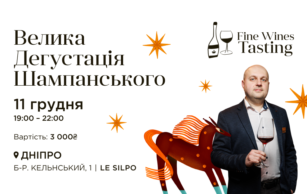 Велика новорічна дегустація Шампані — це нагода зануритись у святкову атмосферу та відкрити палітру стилів шампанського від знакових виробників регіону.