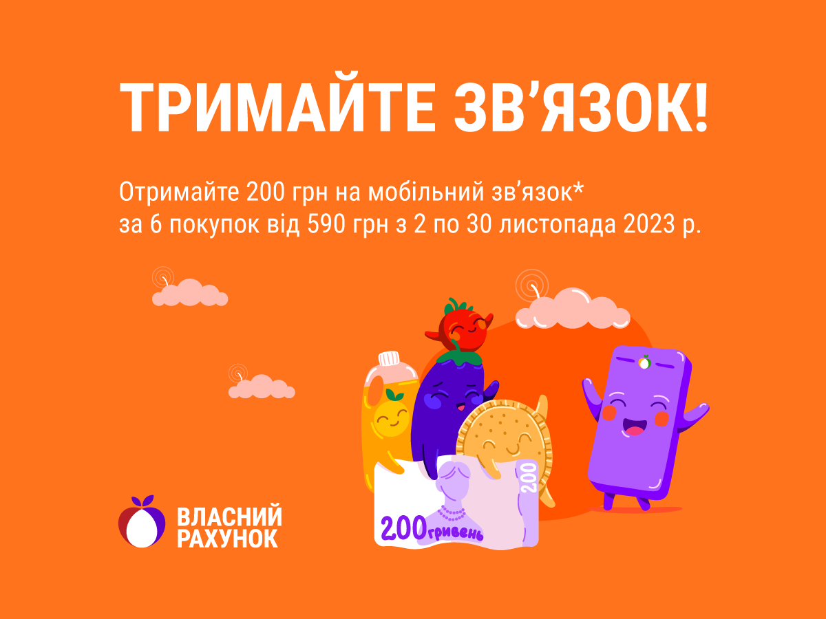 Зробіть 6 покупок від 590 грн*, щоб отримати 200 грн на поповнення мобільного рахунку**