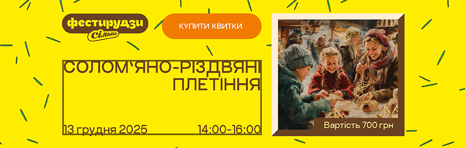 Майстер-класи і події від Фестирудз. Дорослі зможуть зануритися в справжні українські традиції: створити різдвяного павука – традиційну українську прикрасу, яку вішають під стелею, плести дідухи із соломи і колосся, а також створювати святкові різдвяні вінки з натуральних матеріалів.
