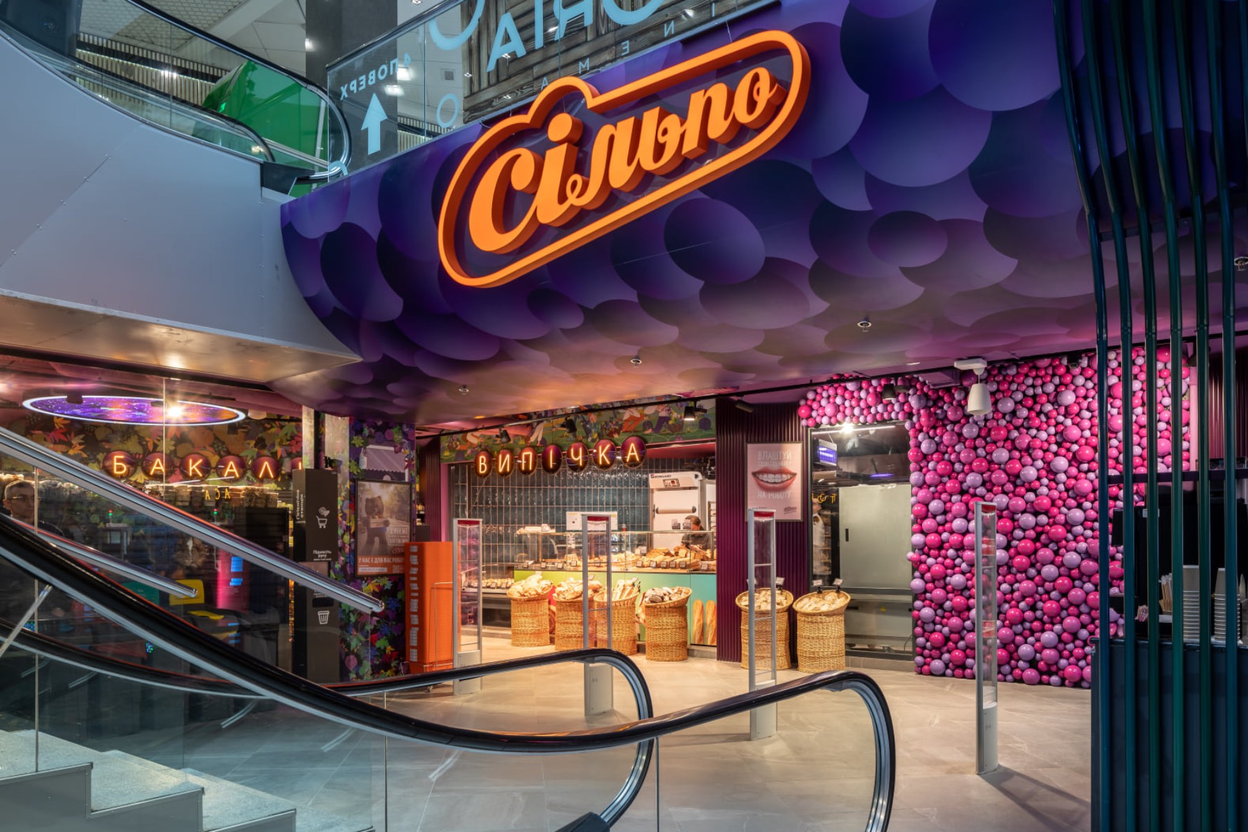 На вході Гостей зустрічає виноградна лоза, яка йде до фризу, і багато різних об'ємних виноградинок на стіні. У залі в спеціальних діжках виграє червоне, біле й рожеве вино, а у відділі овочів та фруктів під стелею розміщено чотири світлових кола, присвячених різним сортам винограду. На шпалерах та колонах зображено декоративний дівочий виноград для створення враження тіні й живоплоту.